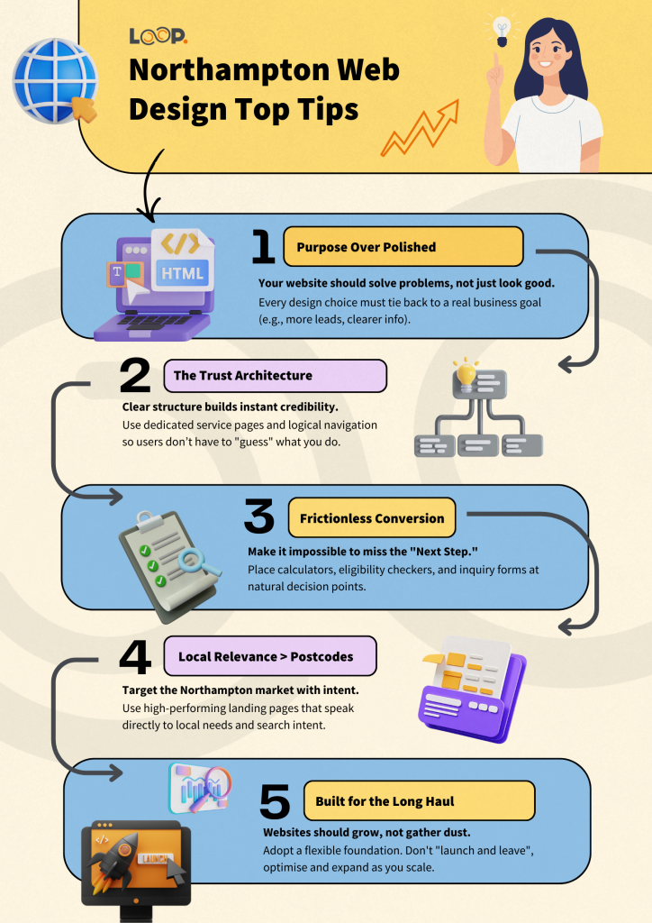 If your website isn’t actively bringing in enquiries, building trust, or supporting your business goals, it might be time to look at what it could be doing better. At Loop Digital, we design websites that are built around real users, real data, and real outcomes, especially for Northampton businesses looking to grow sustainably.
